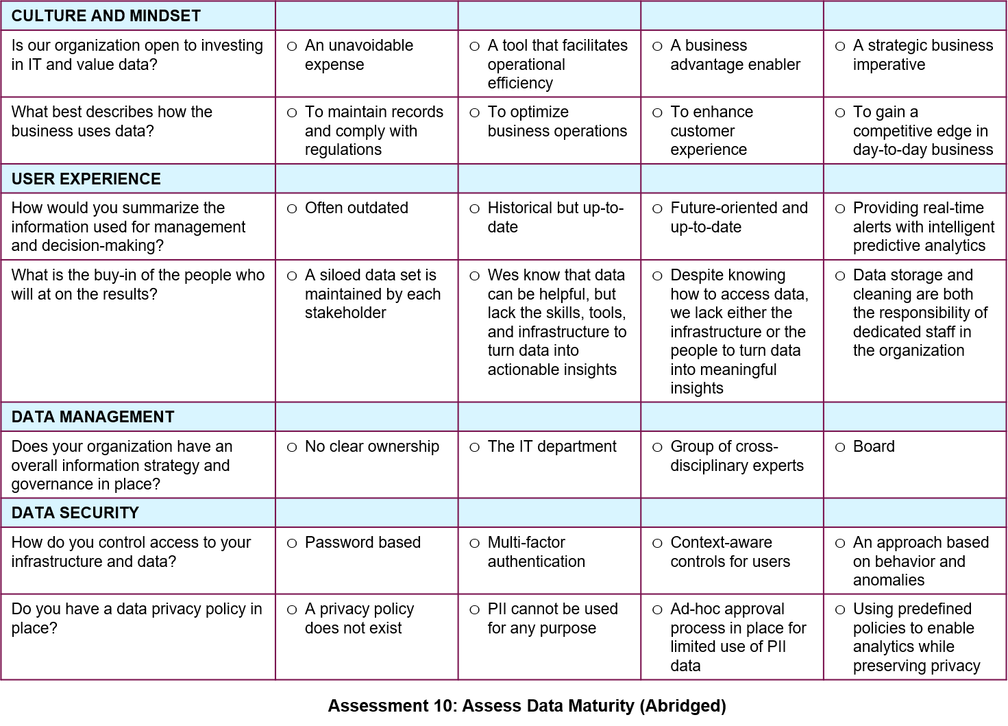 Conduct an organization-wide, department wise, group or a statistically relevant number of people readiness assessment. Determine the level of preparedness in across different dimensions.