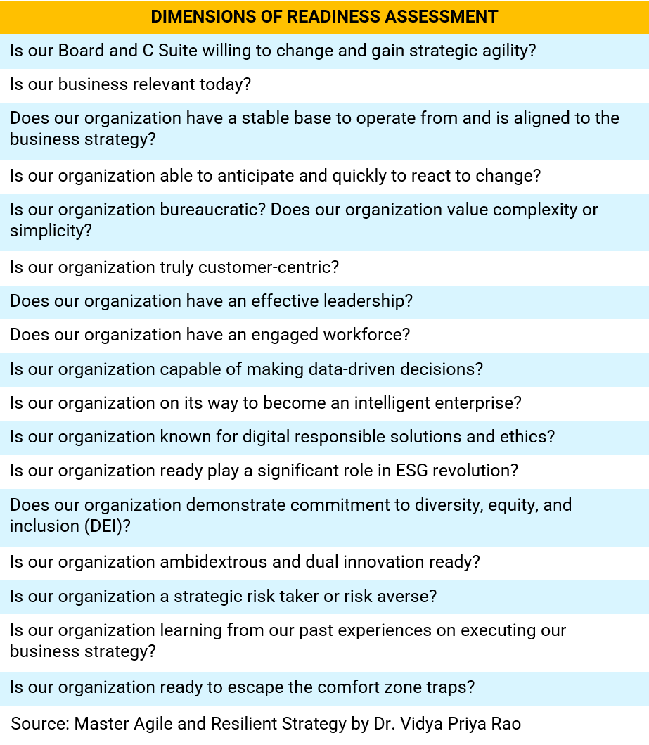 Are our Board and C-suite willing to change and gain strategic agility, set a clear direction for now, near, next and beyond; and get a buy-in?